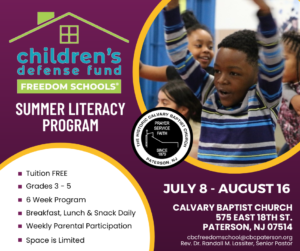 Calvary Baptist Church and Calvary Baptist Community Center will be hosting its First Year of the CDF Freedom School Summer Literacy Program. The program, free of charge, will support children entering grades 3-5 in September 2024. Registration is now open.