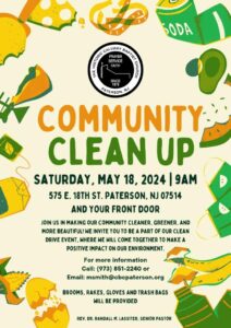 Join the members of Calvary Baptist Church on Saturday, May 18, 2024 from 9:00 a.m. until 12:00 p.m. as its undertakes its Annual Community Clean-up. The members of the church will work side-by-side with the community to clean up the block surrounding the church’s campus.